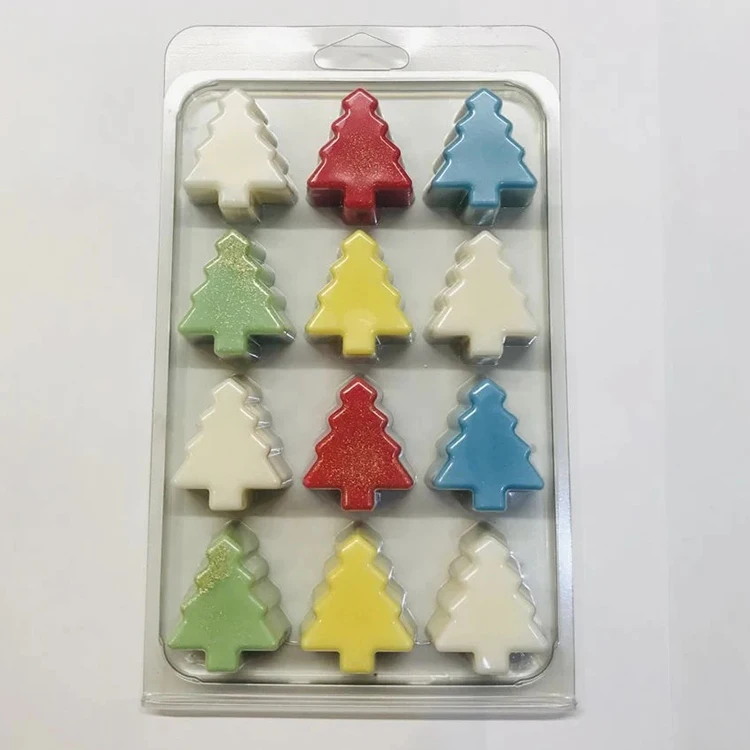 Custom Christmas Tree Wax Melt Clamshell with 6/12/24 Cavities Printed on Coated Paper with Embossing Matt Lamination UV Coating